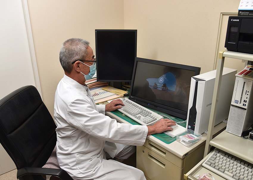 - 具体的には、胃・大腸の内視鏡画像、胸・腹部や骨・関節、脳のCT・MRIなどです。当院では超音波くらいしかありませんので、三豊総合病院で診てもらっています。